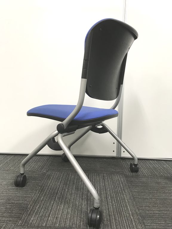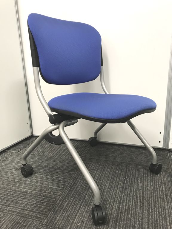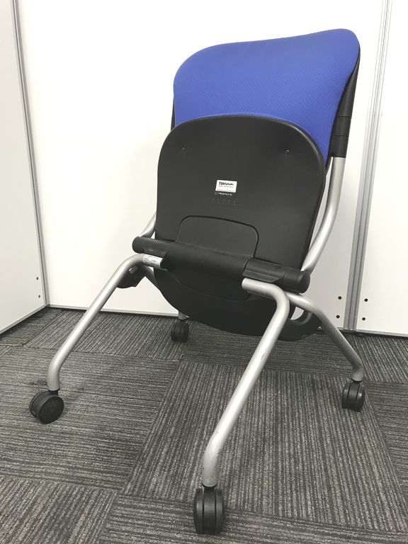 人気のブルーカラーで座面が折れ、横に重ねて置ける為整理整頓が出来ます!