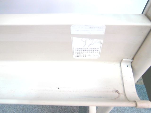 - かなり強い濃い黄ばみ・変色が商品全体にある。(例、板面、受け、サイド部分、脚部にある。)