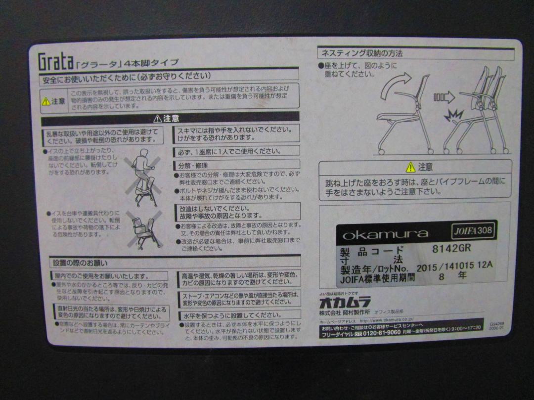 【中古】 グラータチェア 8142GR オカムラ/okamura スタッキングチェア 223842