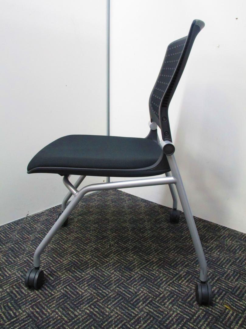 【おつとめ品¥8,000→4,500】キャスターが割れている為、お安く!オカムラ製ネスティングチェア【グラータ】!人気のブラック!【中古オフィス家具】【さいたま】- 埼玉本店