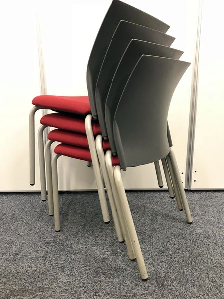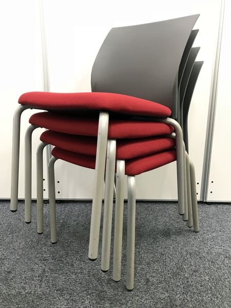 【Steelcase製】スタッキングチェア 背:樹脂、座面:布 カラー:レッド- 名古屋本店