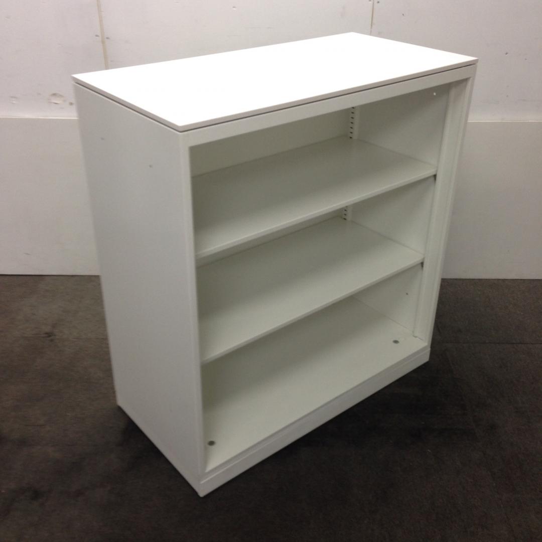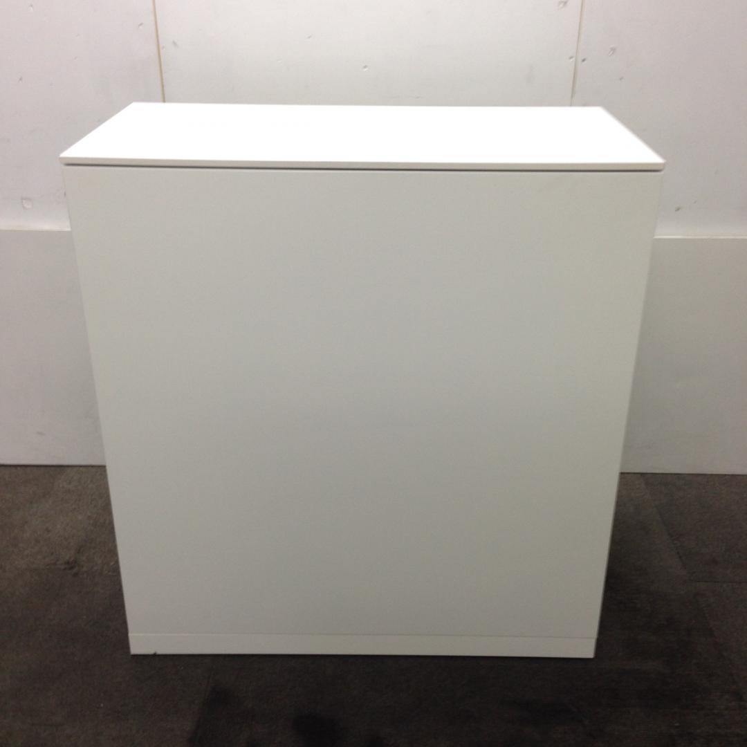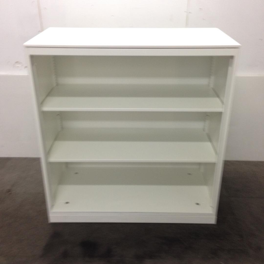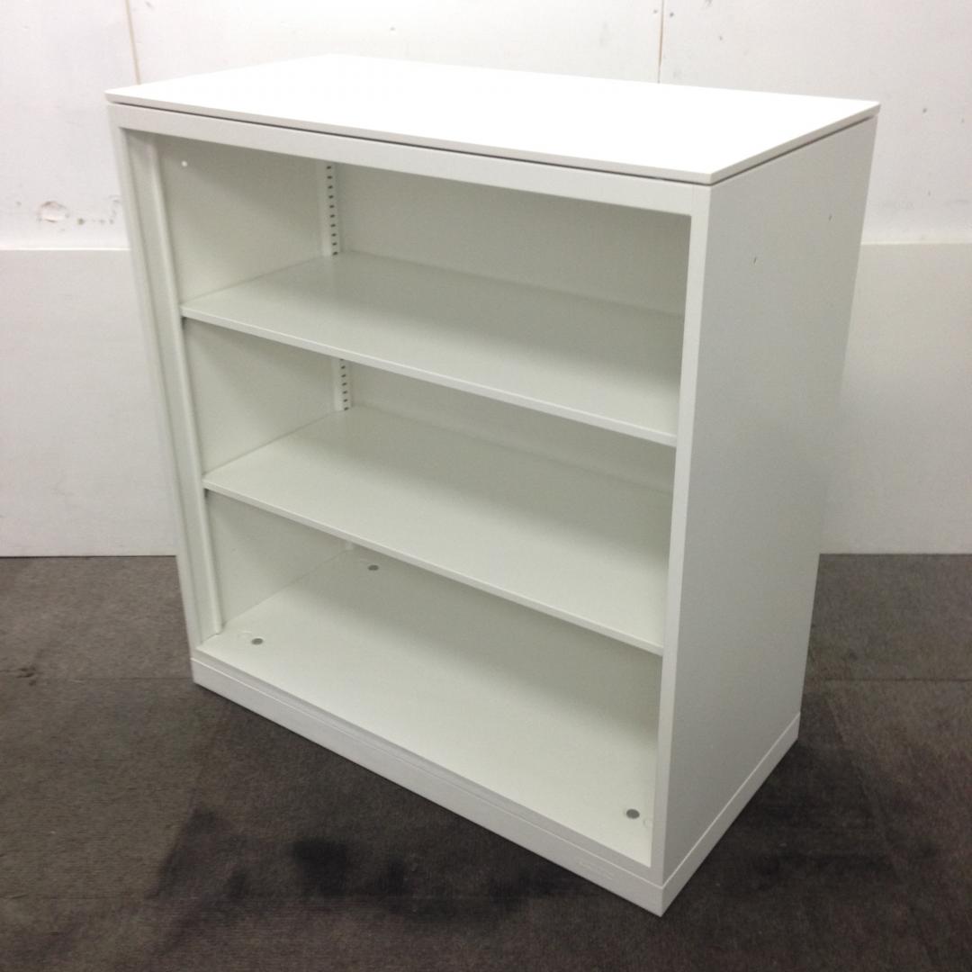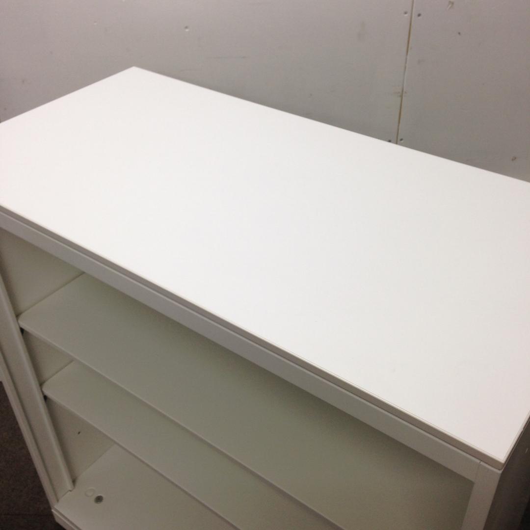 【オフィスの書類をスッキリ整理! 扉の無いタイプなので資料探しがラクラク!】■オカムラ(okamura)製 レクトライン(Rectline)シリーズ オープン書庫 ローキャビネット ■色:ホワイト ※扉外し商品のため外し跡がございます。