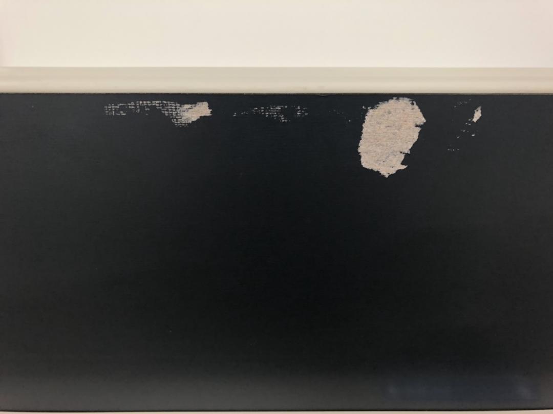 - かなり強い濃い黄ばみ・変色が商品全体にある。(例、天板、幕板、棚板、サイド部分、脚部等にある。)