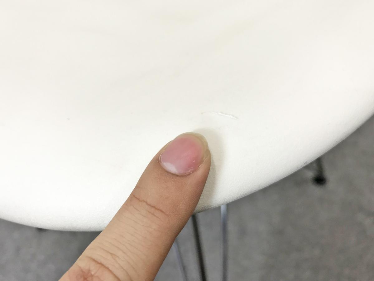 - 目立つ箇所あり傷・破れ・ほつれ・へたり・しわが多数または深い傷・破れ・ほつれ・へたり・しわが一部ある。※座面・背もたれ、シェル、脚部等にある。