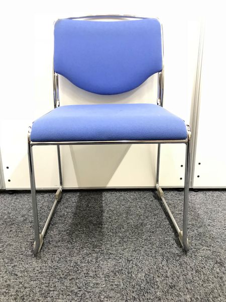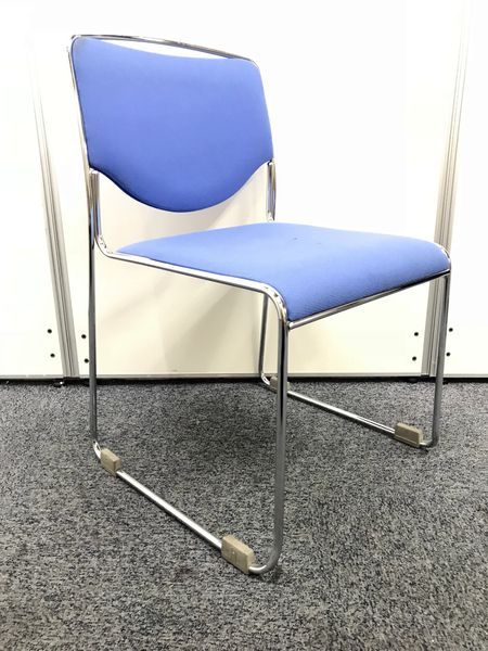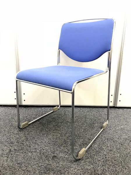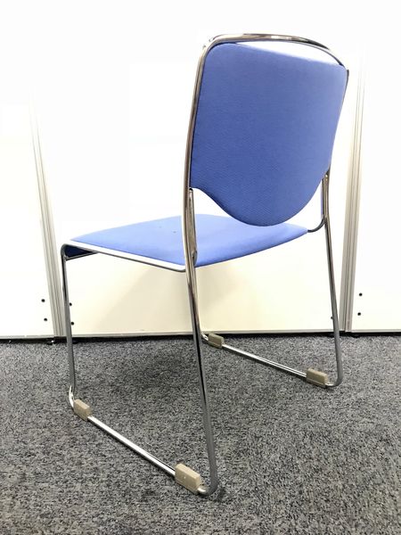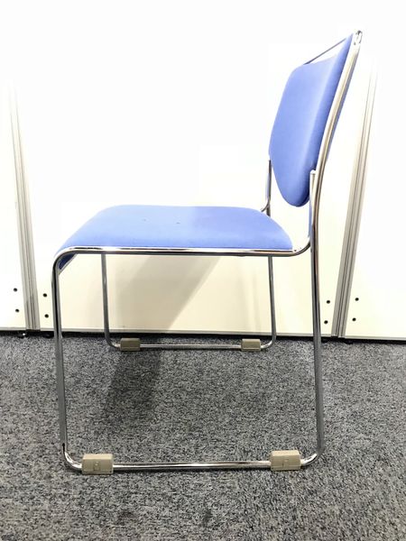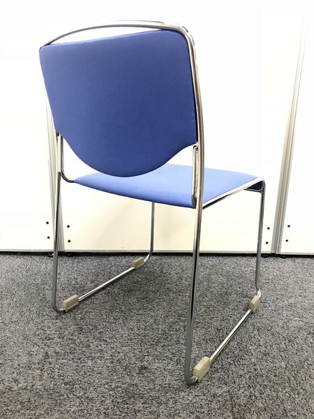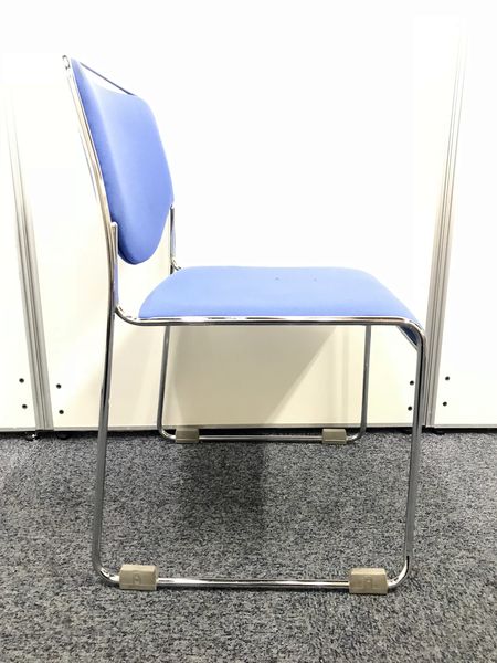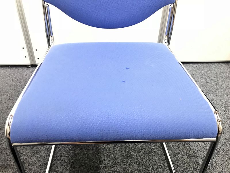 【明るめブルーで事務所も爽やかに!】オカムラ製スタッキングチェア【ステンレスフレームがオシャレです】- 名古屋本店