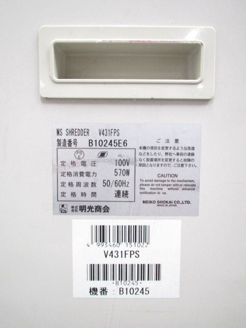 【中古】 MS-V431FPS 明光商会 シュレッダー 224346