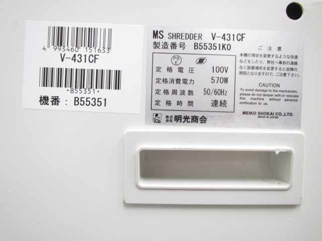 【中古】 MS-V431CF 明光商会 シュレッダー 224347