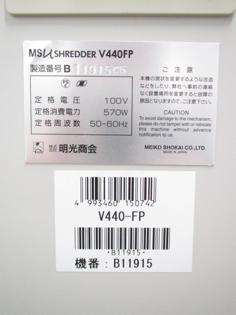 【中古】 MSシリーズ MS-V440FP 明光商会 シュレッダー 224351