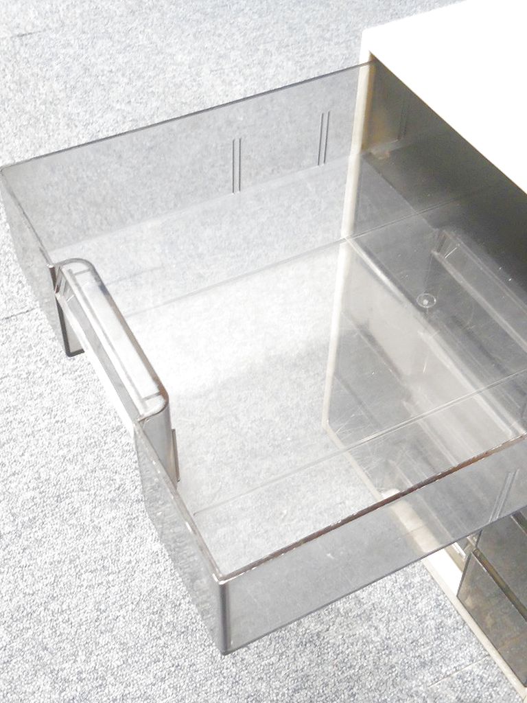 - 多数不具合あり引出の開閉不可、施錠不可、棚板無しといったその書庫の本来の効用を果たすための機能以外の多数が使用不可(例、扉、引出の開閉がしづらいなどがある。 )