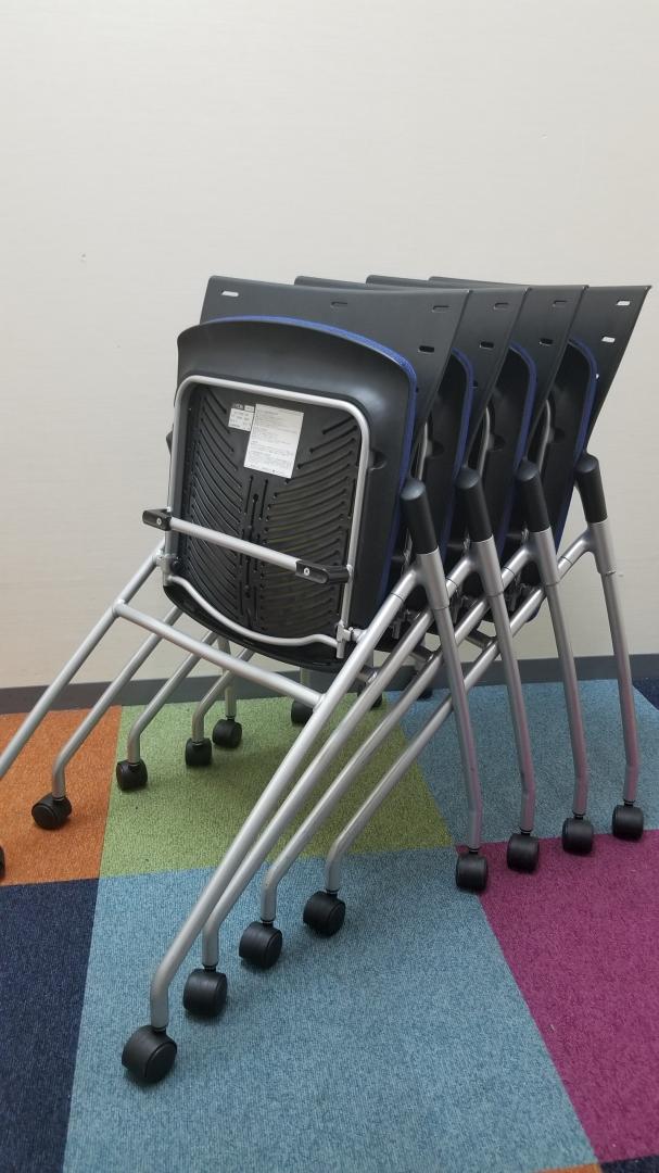 キャスター脚のミーティングチェアですので、収納の再等移動も楽に出来ます。