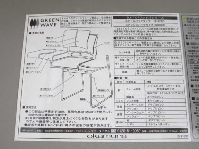 【中古】 リット 8127ZZ オカムラ/okamura スタッキングチェア 224495