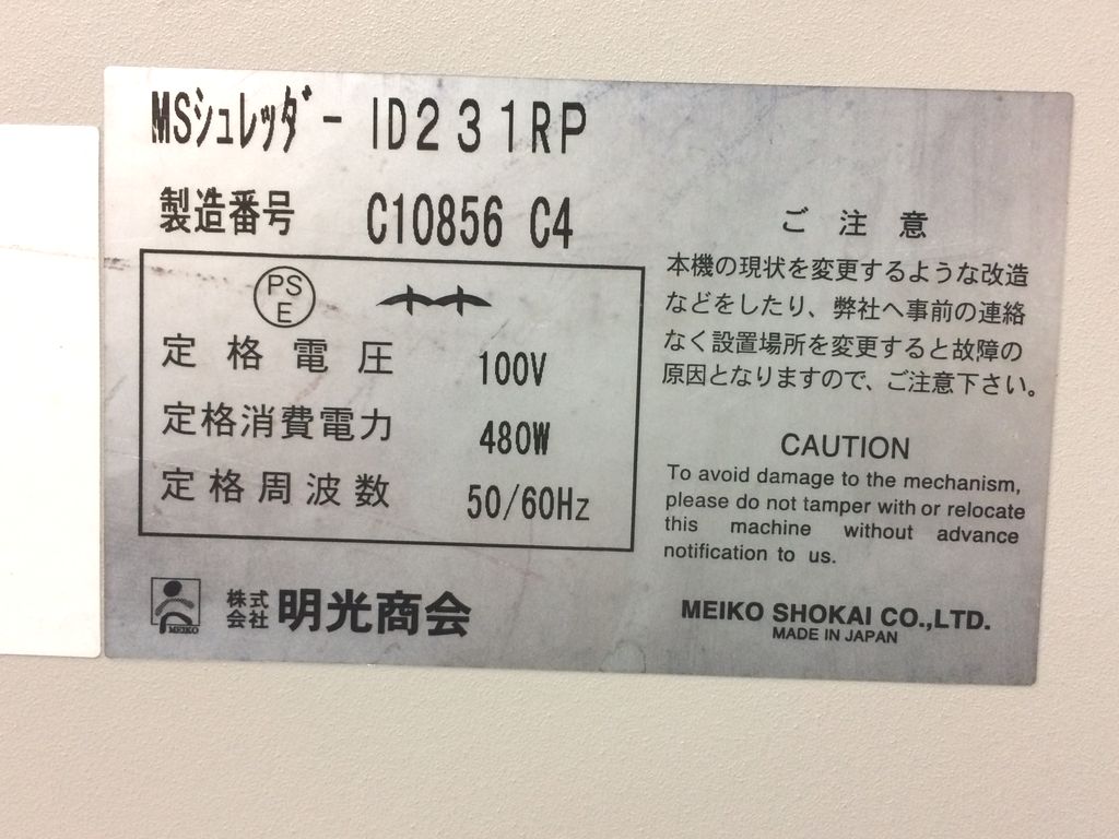 【中古】 MS-ID231RP 明光商会 シュレッダー 224594