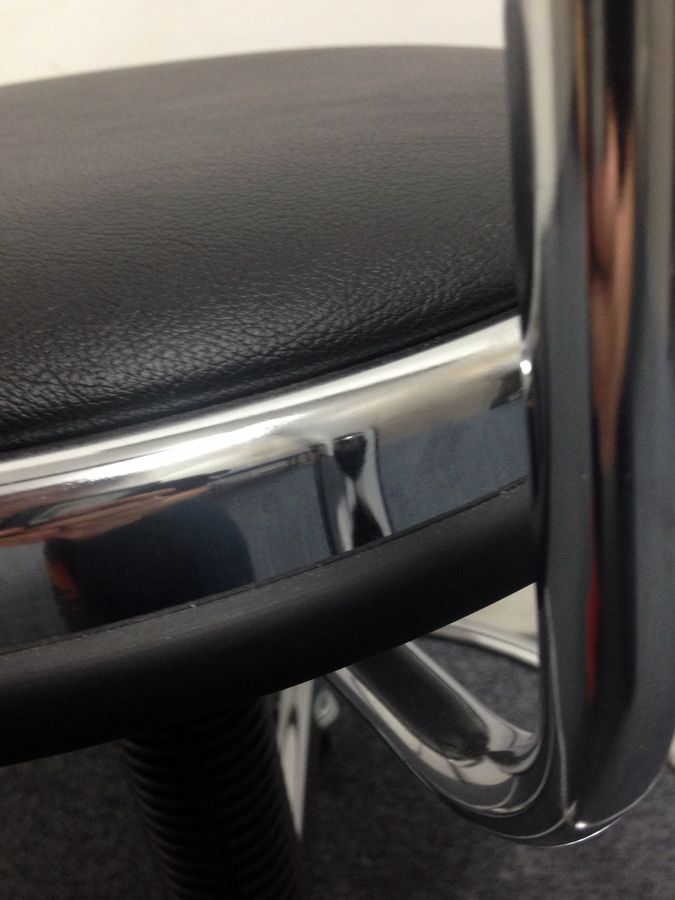 - かなり強い濃い黄ばみ・変色が商品全体にある。(例、座面・背もたれ、脚部等にある。)