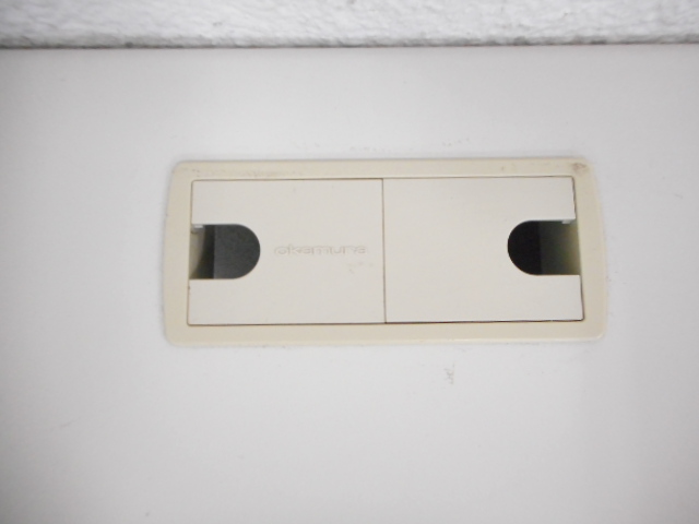 天板奥側の左右2ヶ所に配線取り出し口が付いており、