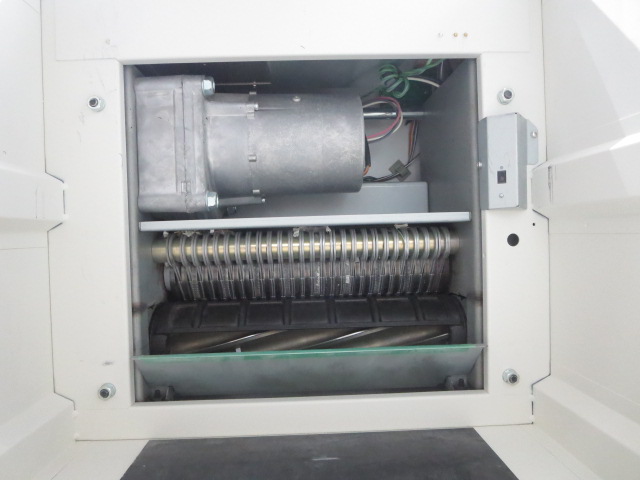 くず箱に振動を与えることで、片寄った細断くずを均等にならします。