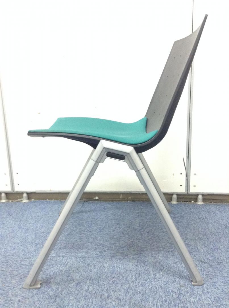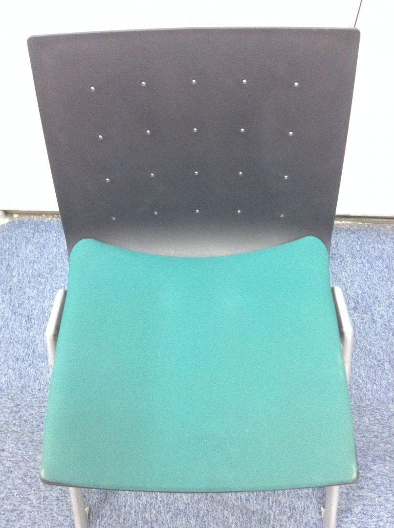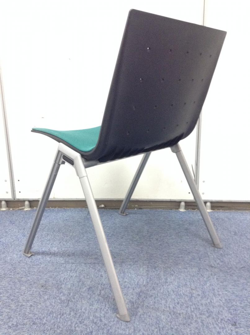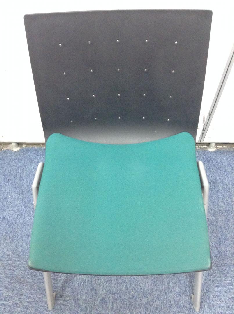 背面ブラック×座面グリーン オシャレな内田洋行製スタッキングチェア- 京都東寺店