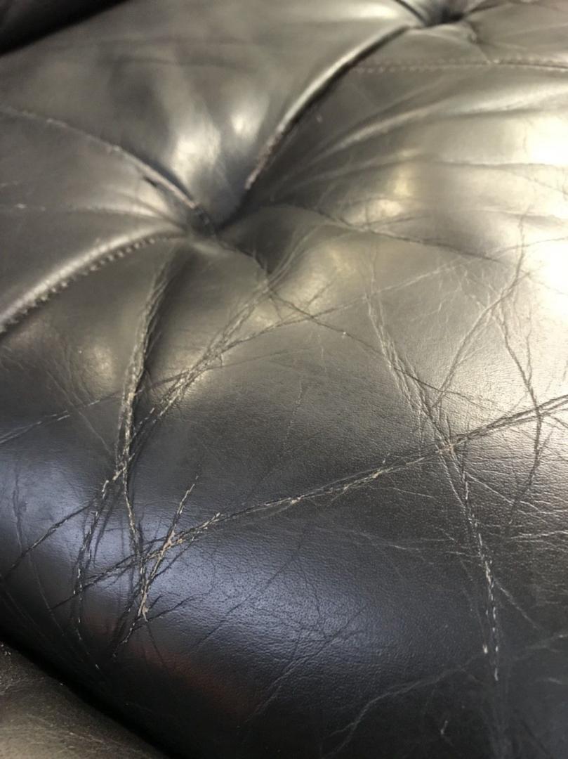 - あり黄ばみ・変色が広い範囲にうっすらある、または濃い黄ばみ・変色が一部ある。(例:三人用ソファ、二人用ソファ、一人用ソファの場合、背もたれ、肘かけ、座面等、 センターテーブルの場合、天板、脚にある。)
