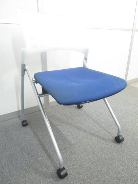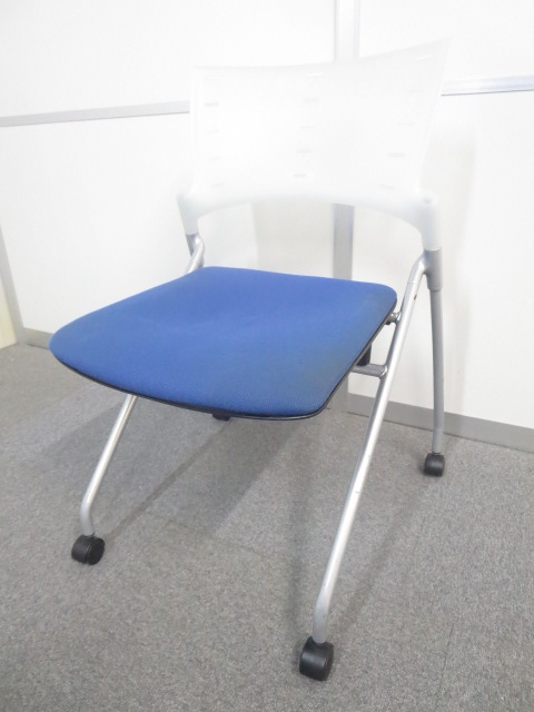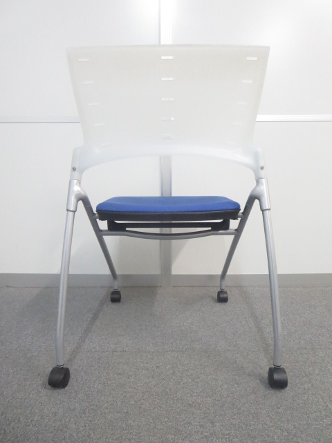 【セミナー・会議用にオススメ】■イトーキ マノスチェア ブルー×クリアホワイト ■重ねて収納可能!使わないときは場所を取らないチェアです。- 川崎店