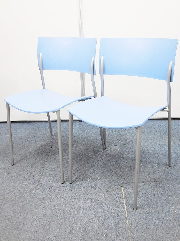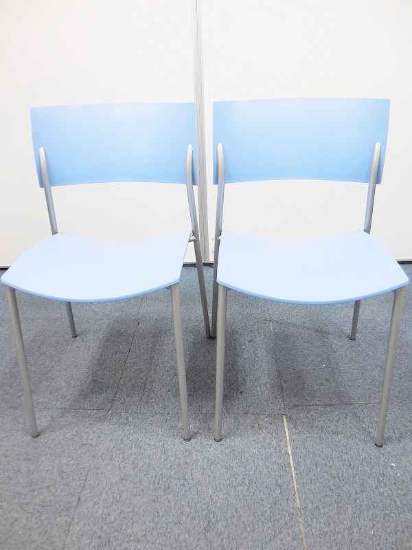 【セットでお買い得!】清潔感溢れるブルーのスタッキングチェア!使わないときは重ねて収納可能!会議室や研修スペースにいかがでしょうか!- 横浜本店