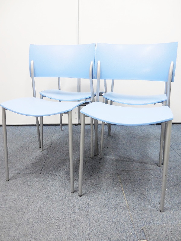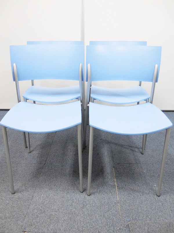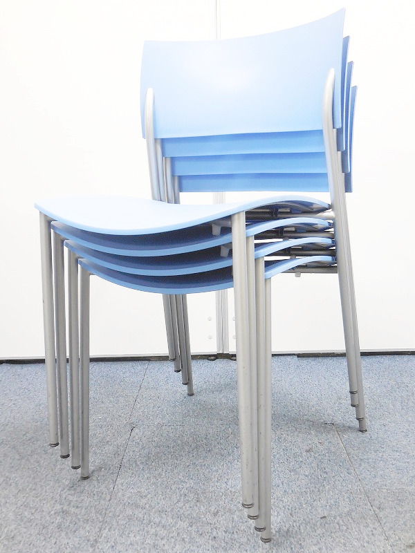 【纏め買いがおすすめ!】清潔感溢れるブルーのスタッキングチェア!使わないときは重ねて収納可能!会議室や研修スペースにいかがでしょうか!- 横浜本店