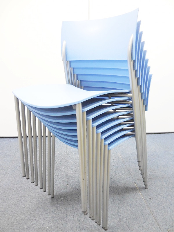 【セットで2000円お値引き!】清潔感溢れるブルーのスタッキングチェア!使わないときは重ねて収納可能!会議室や研修スペースにいかがでしょうか!- 横浜本店