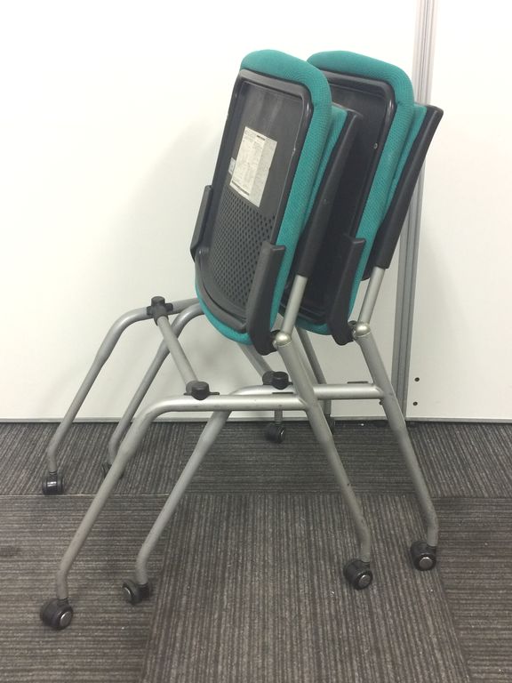 オカムラ製のプロスタックチェアは水平に収納が可能!