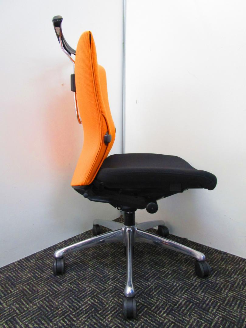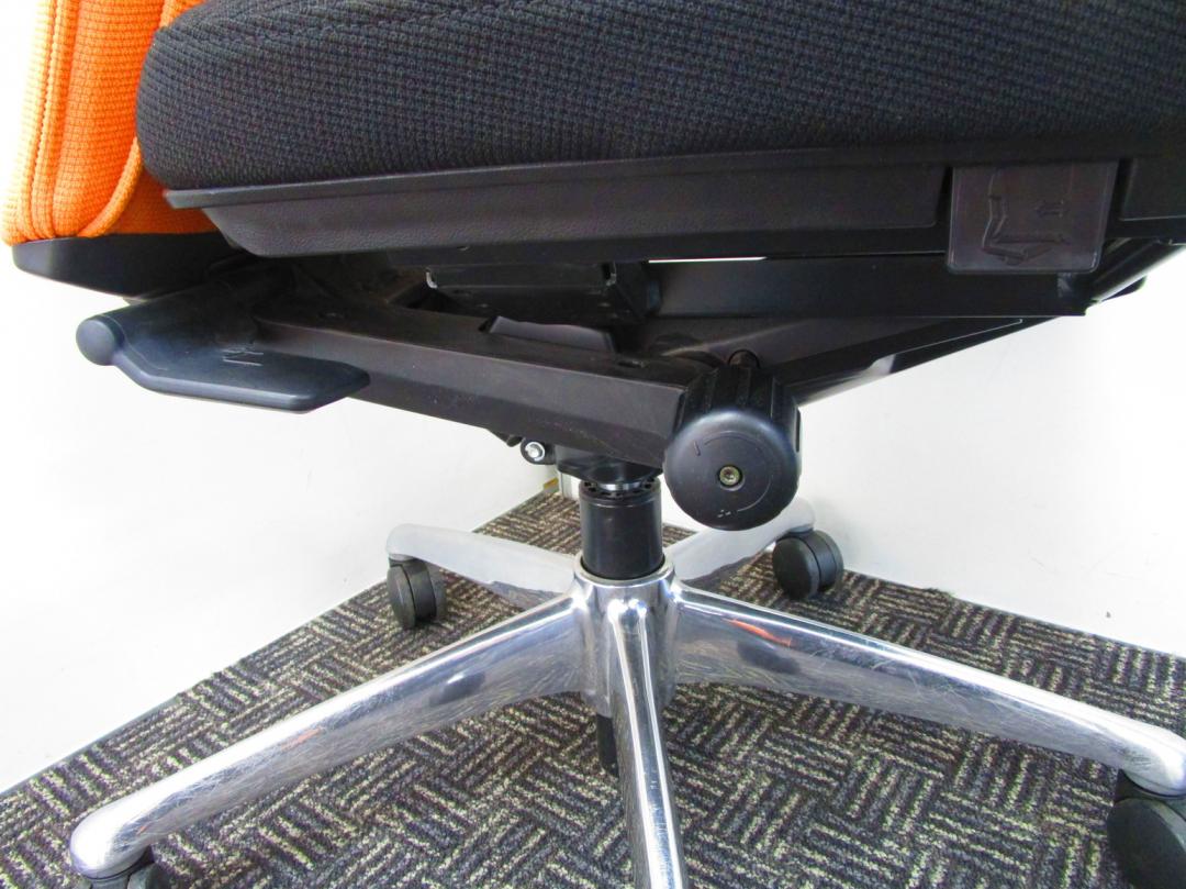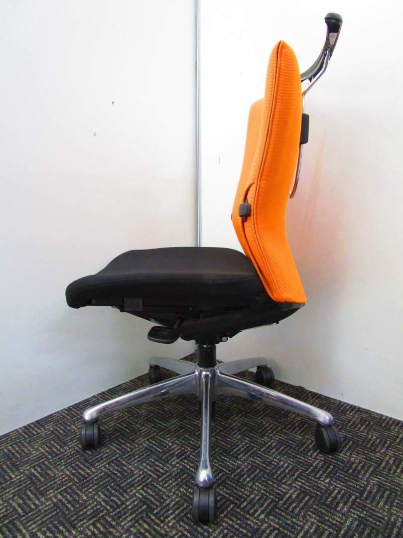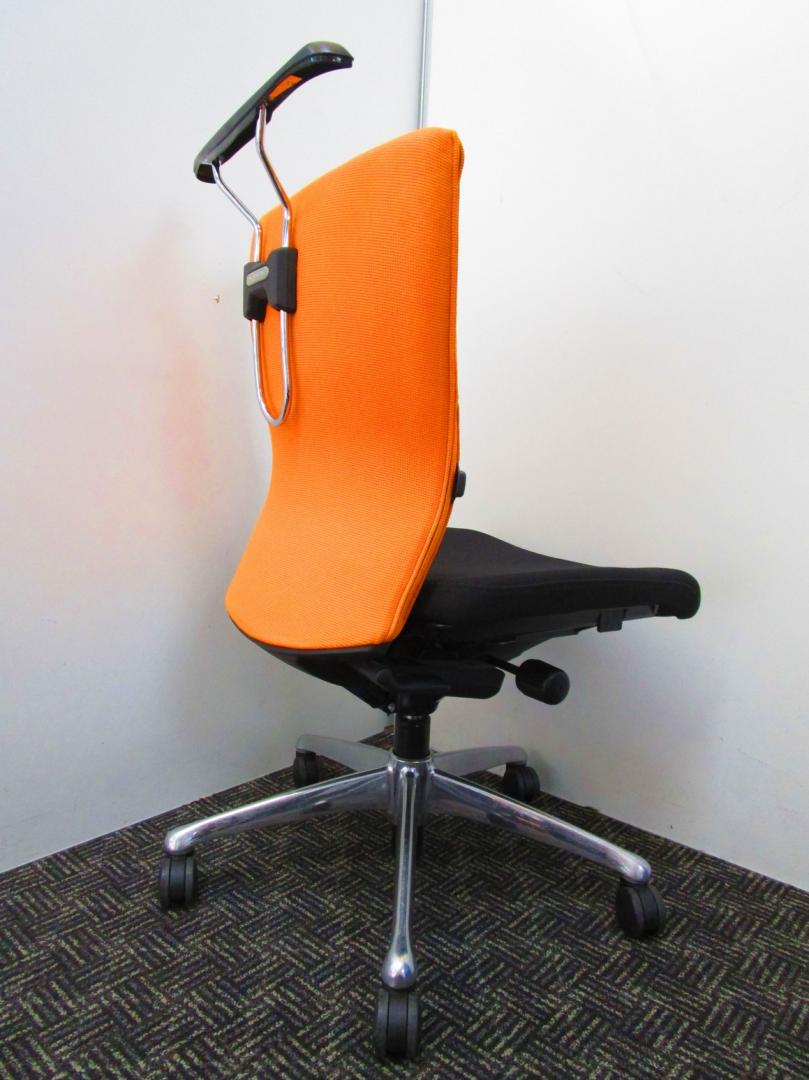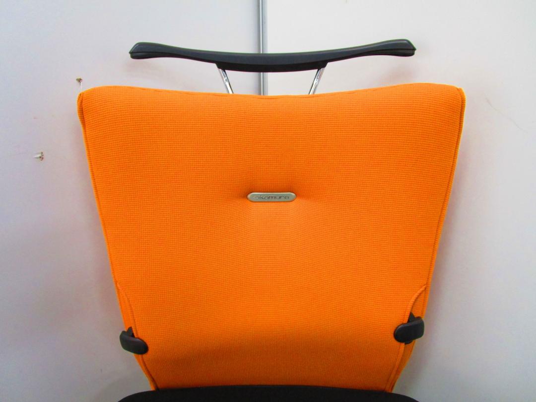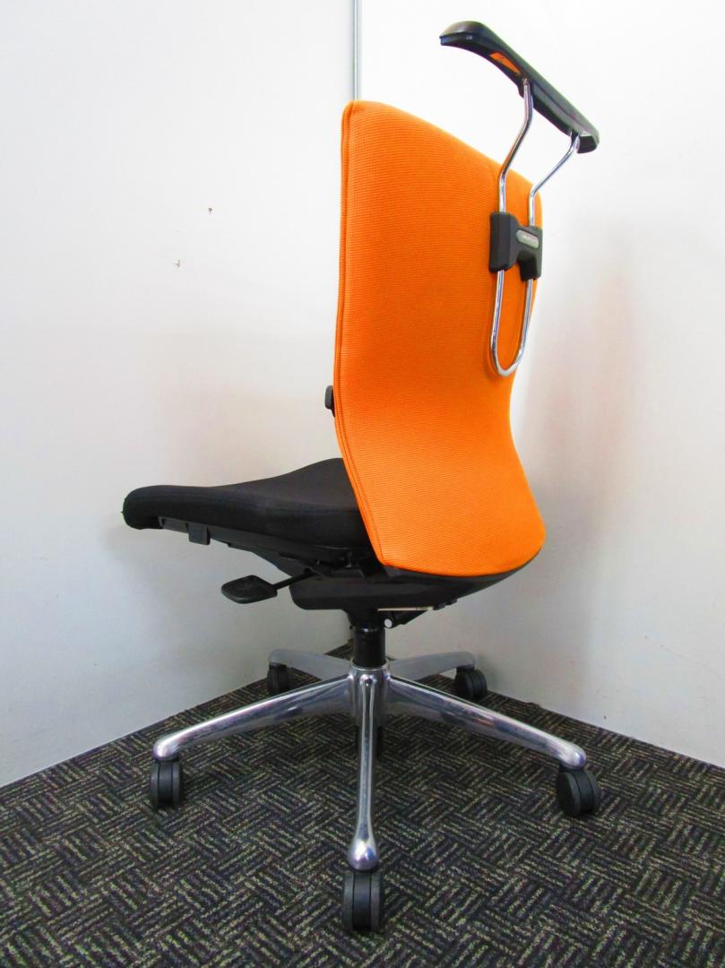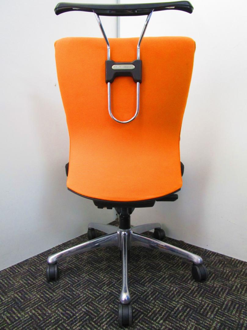 【¥12,000⇒¥9,000】【在庫一掃のため特別価格!】高機能な肘付きチェアが安い!便利なコートハンガー付き!明るいオレンジカラー!【中古オフィス家具】【さいたま市】- 埼玉本店