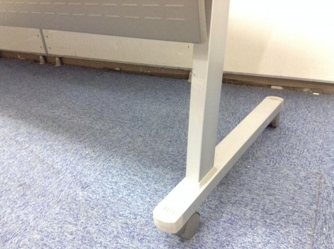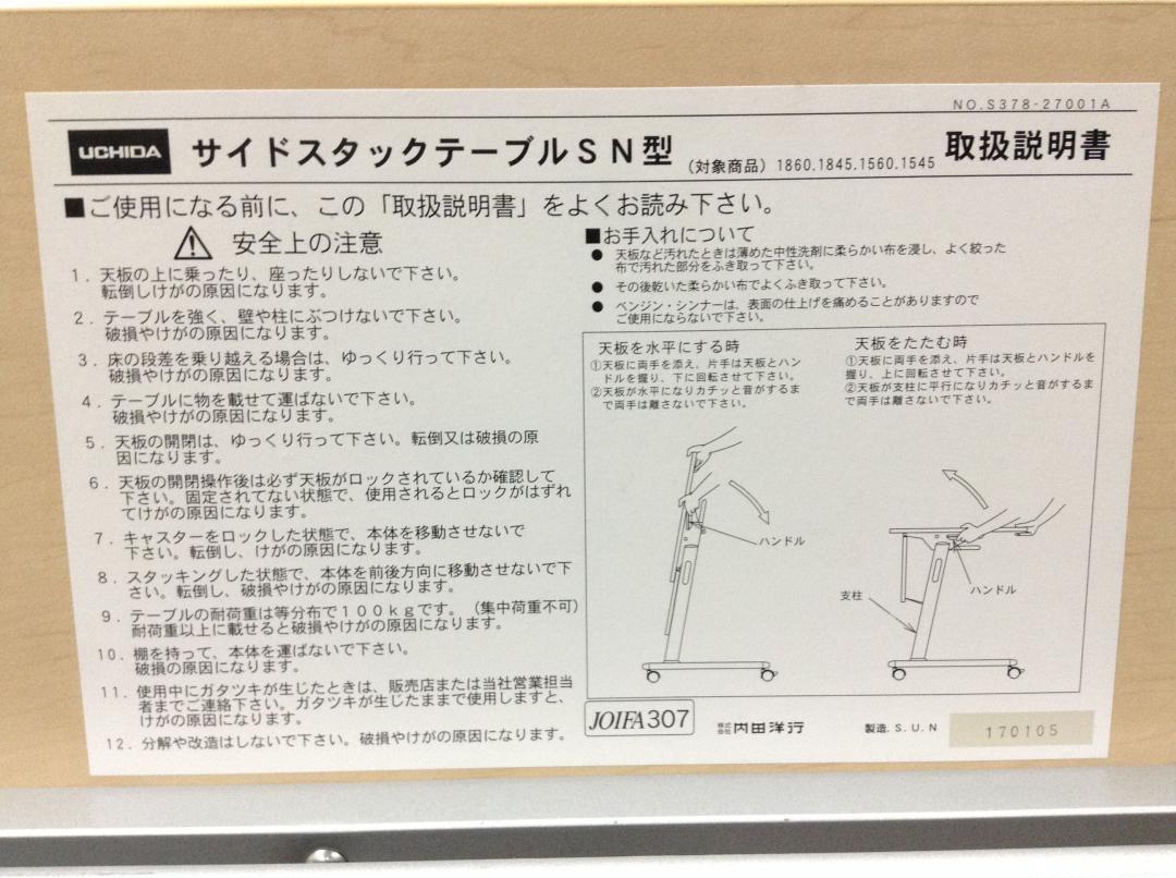 - 一部不具合あり天板歪み、アジャスター無し、キャスター使用不可ようなそのテーブルの本来の効用を果たすための機能以外の一部が使用不可な状態。(例、キャスターロッ ク機能使用不可、棚板無し等がある。)