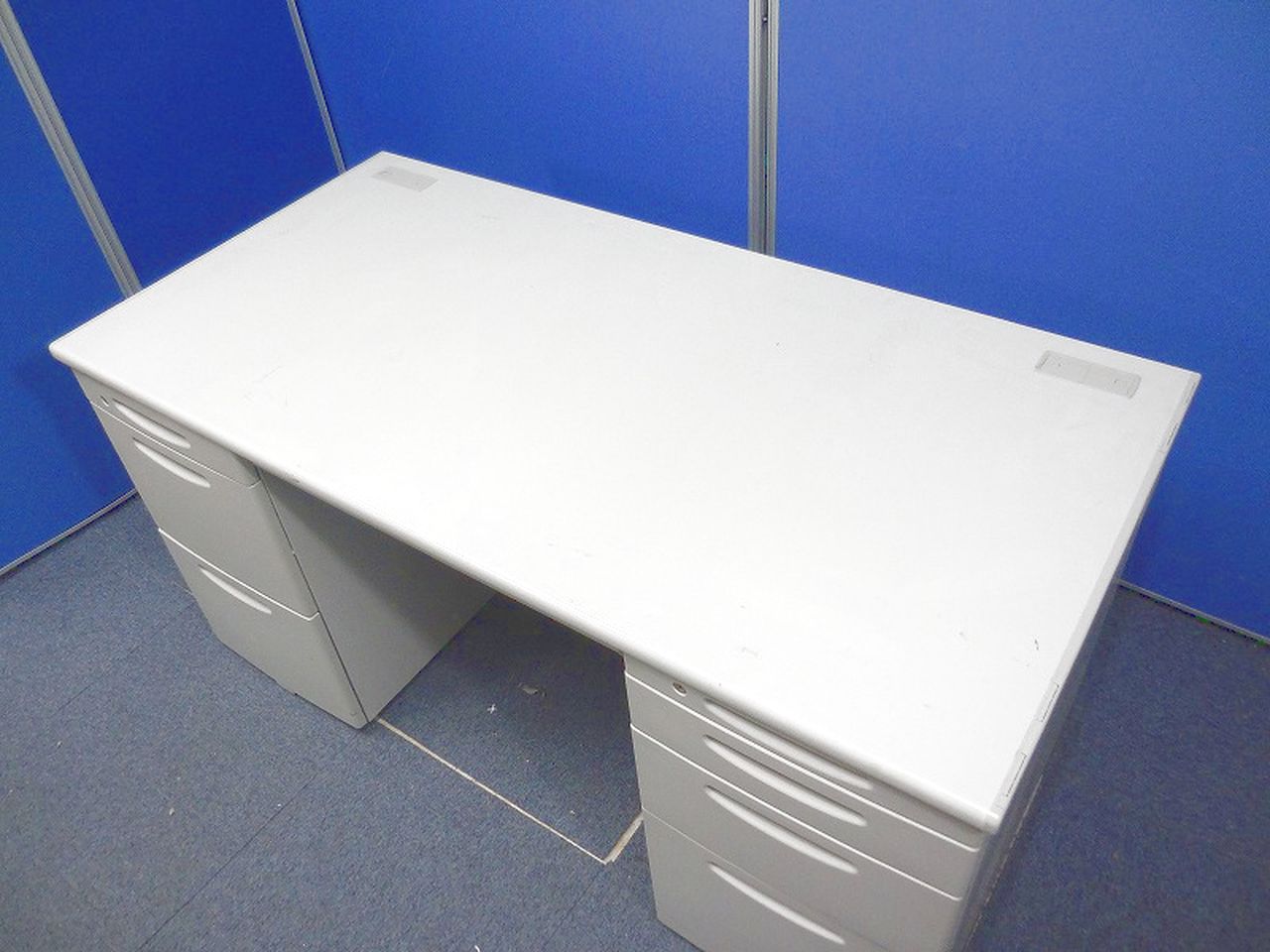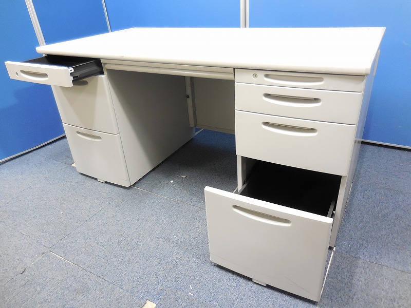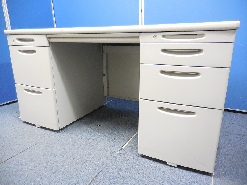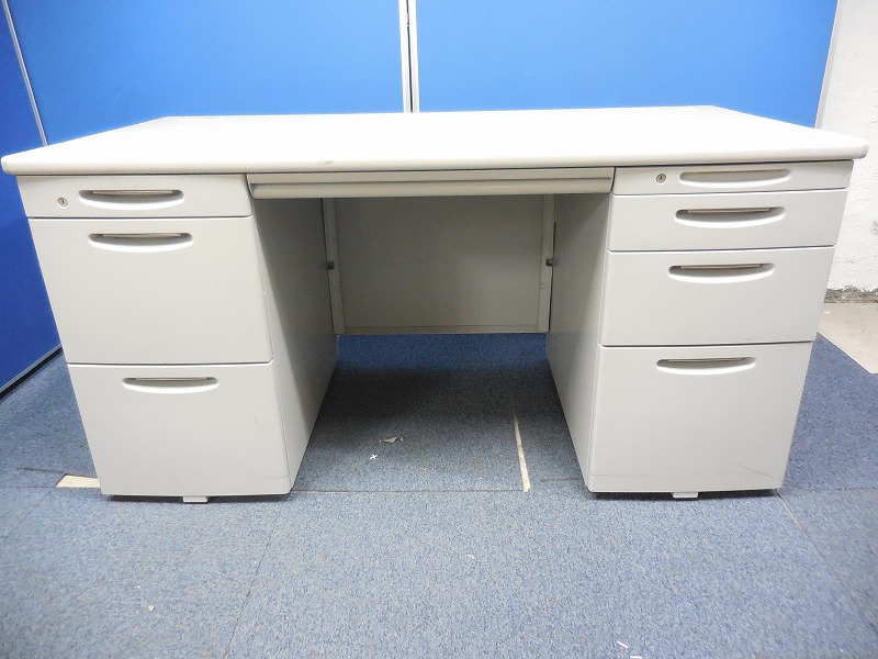 上長席・役員向けサイズ オカムラ SDデスクシステム 両袖机 定番のW1400サイズ 汚れの目立ちにくいニューグレー 鍵付き シリンダー錠