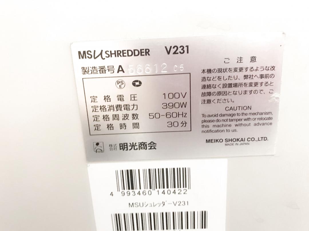 【中古】 MSシリーズ MS-V231 明光商会 シュレッダー 225418