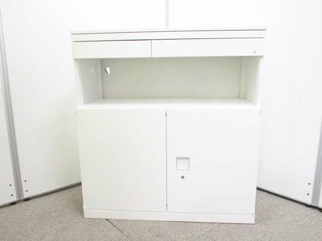 【オシャレな天板付きのダストボックス!新オフィスなどいかがでしょうか!】オカムラ レクトライン 両開き ホワイト 《オフィスバスターズ福岡博多店は、福岡を拠点として、日本全国へ中古オフィス用品・オフィス家具を提供しております》