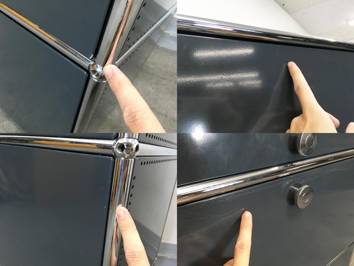 - 目立つ箇所あり傷・凹みが多数、深い傷・凹みが一部ある。(例、天板、正面、背部、サイド部分にある。)