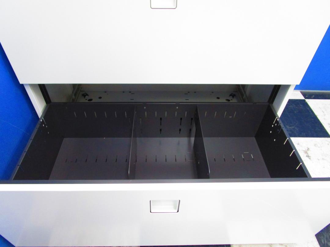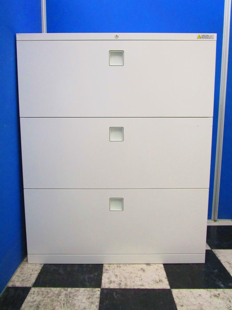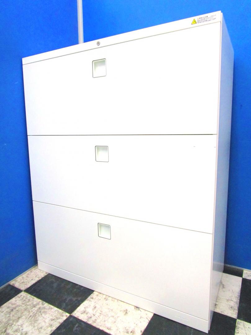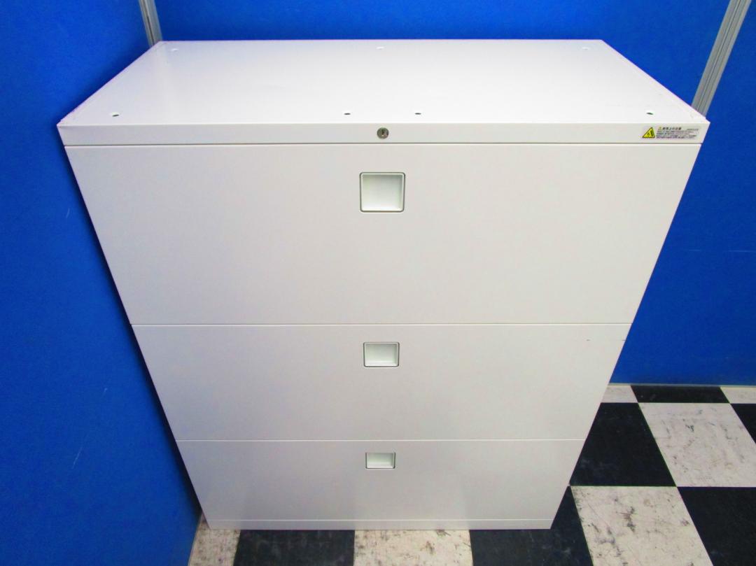 ■オカムラ(okamura)製 レクトラインシリーズ 3段ラテラル ローキャビネット ■天板・ベース付 ■シリンダー錠 ■ホワイト ■収納力抜群【弊社使用欄:A01037187】【SN】