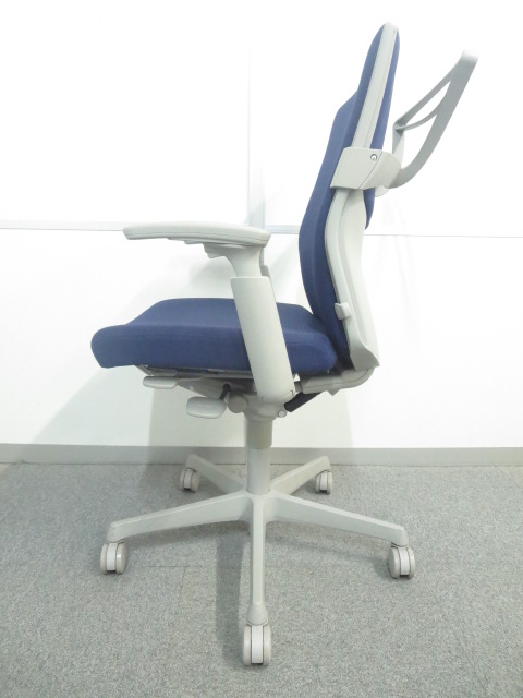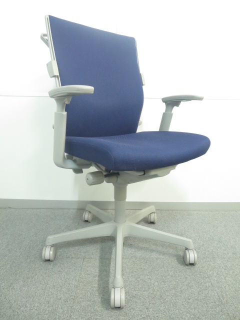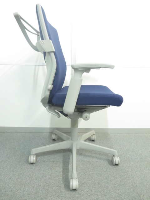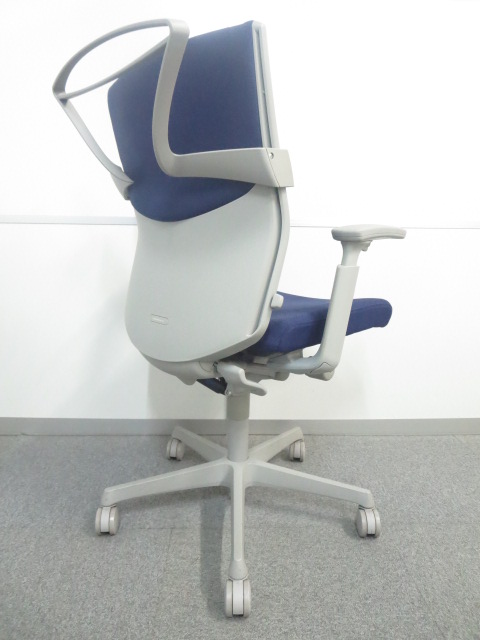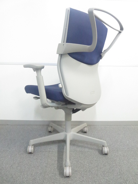 【人間工学に基づいて設計された快適!】■オカムラ製 エスクードチェア ■可動肘 ブルー ハンガー付- 川崎店
