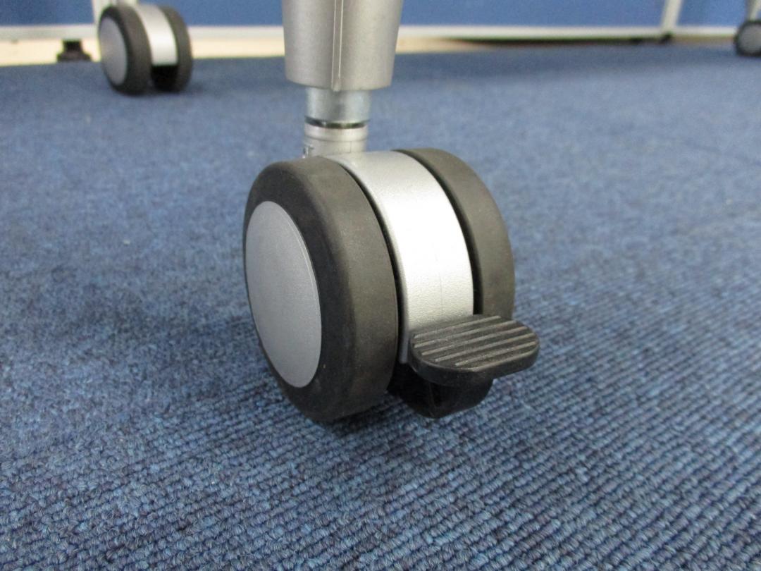 - 一部不具合あり天板歪み、アジャスター無し、キャスター使用不可ようなそのテーブルの本来の効用を果たすための機能以外の一部が使用不可な状態。(例、キャスターロッ ク機能使用不可、棚板無し等がある。)