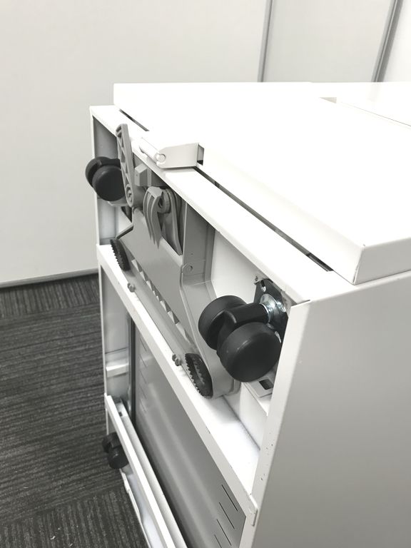 - 一部不具合ありその脇机・ワゴンの本来の効用を果たすための機能以外の一部が使用不可な状態。(例、引出が開閉しづらい、 キャスターロック機能使用不可、ラッチ不良 等がある。)