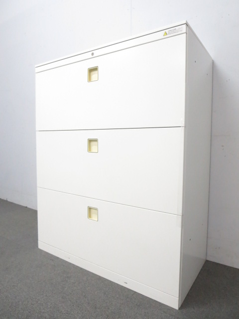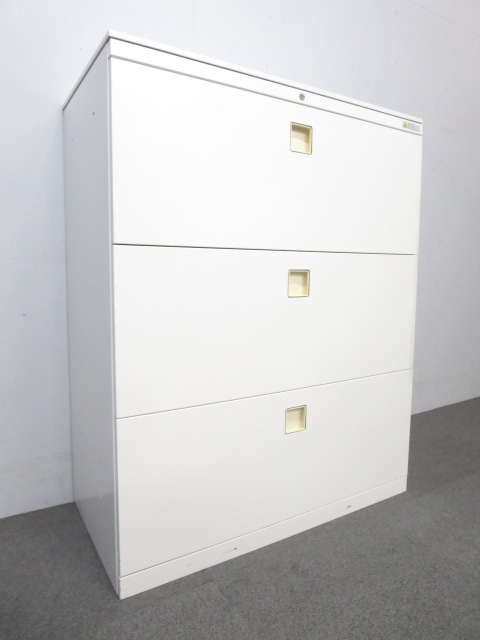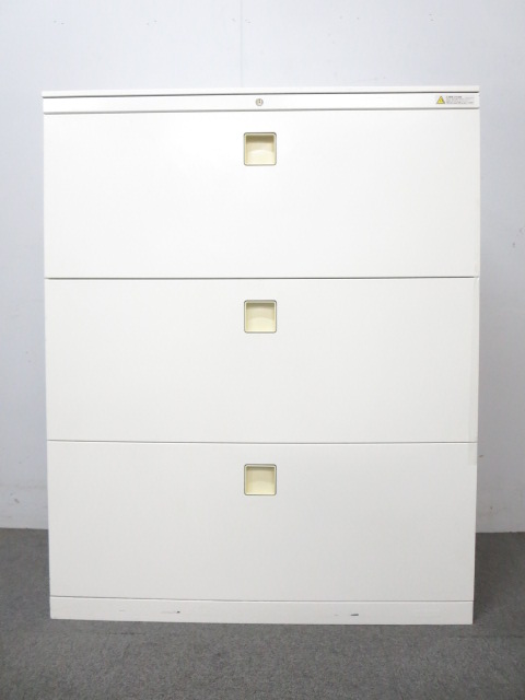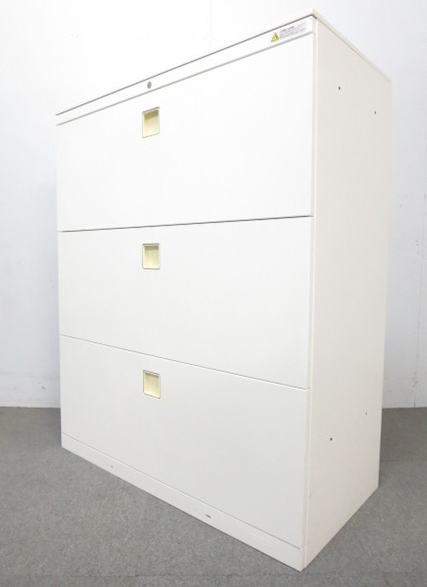 【ファイル収納にオススメ!高品質で使いやすい人気シリーズの3段ラテラル書庫!】■オカムラ(okamura)製 レクトラインシリーズ 3段ラテラル書庫 ローキャビネット H1100㎜ ■ホワイト ■シリンダー鍵 ■天板付き(天板:ホワイト) ※日焼け有