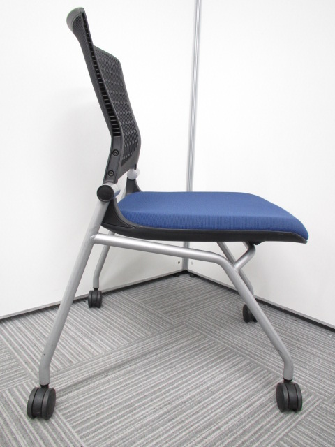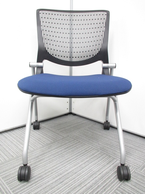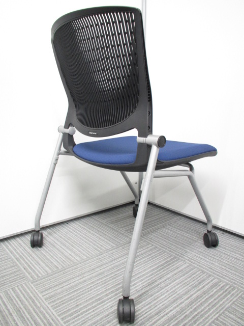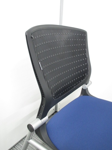[在庫一掃セール品]【あると便利なネスティングチェア】岡村製作所(オカムラ)製 グラータ ブラック ブルー コンパクト ※背もたれ割れ・凹凸あり有りの為。サーキュラーバリューCO2削減量の算出について