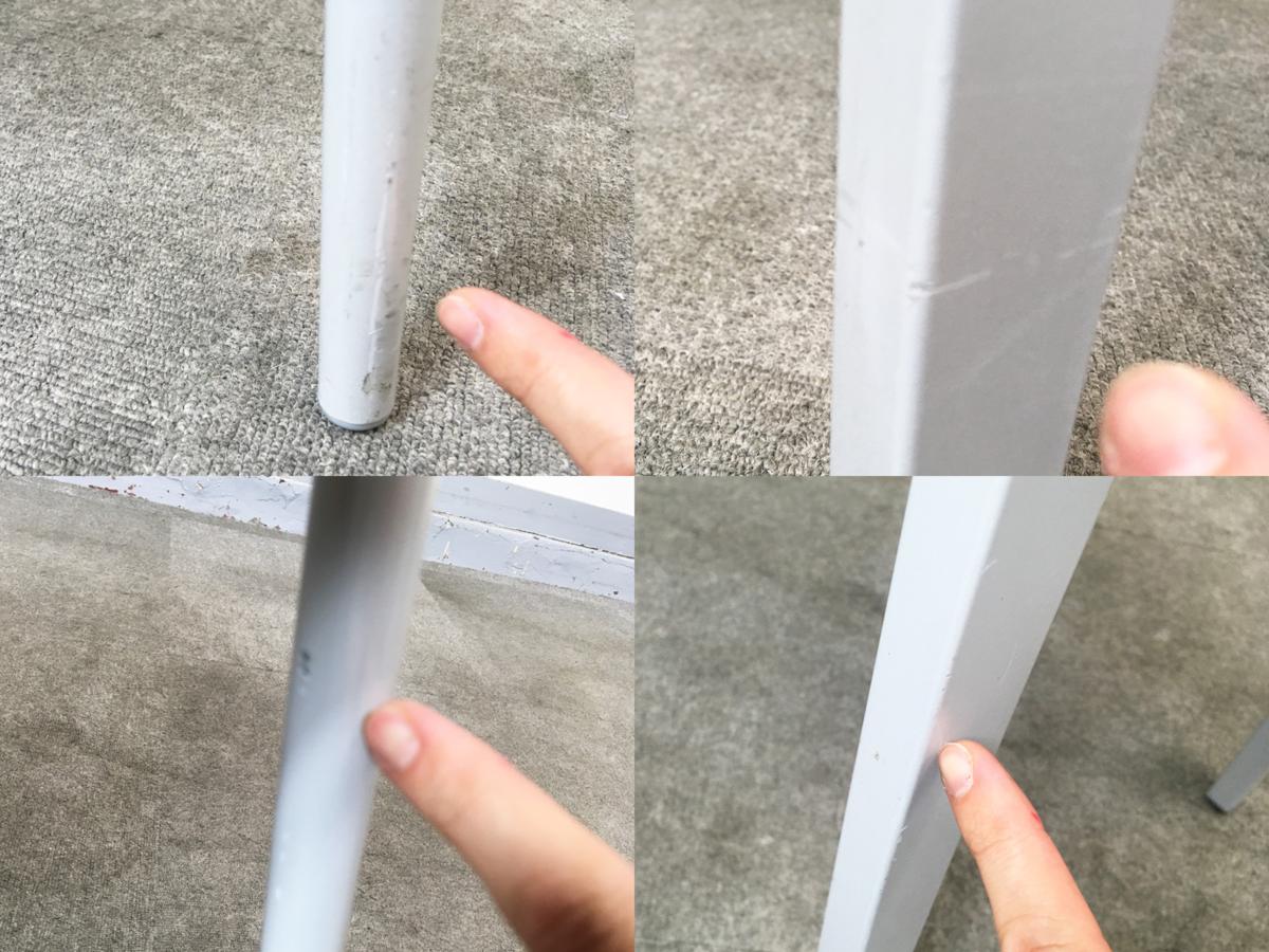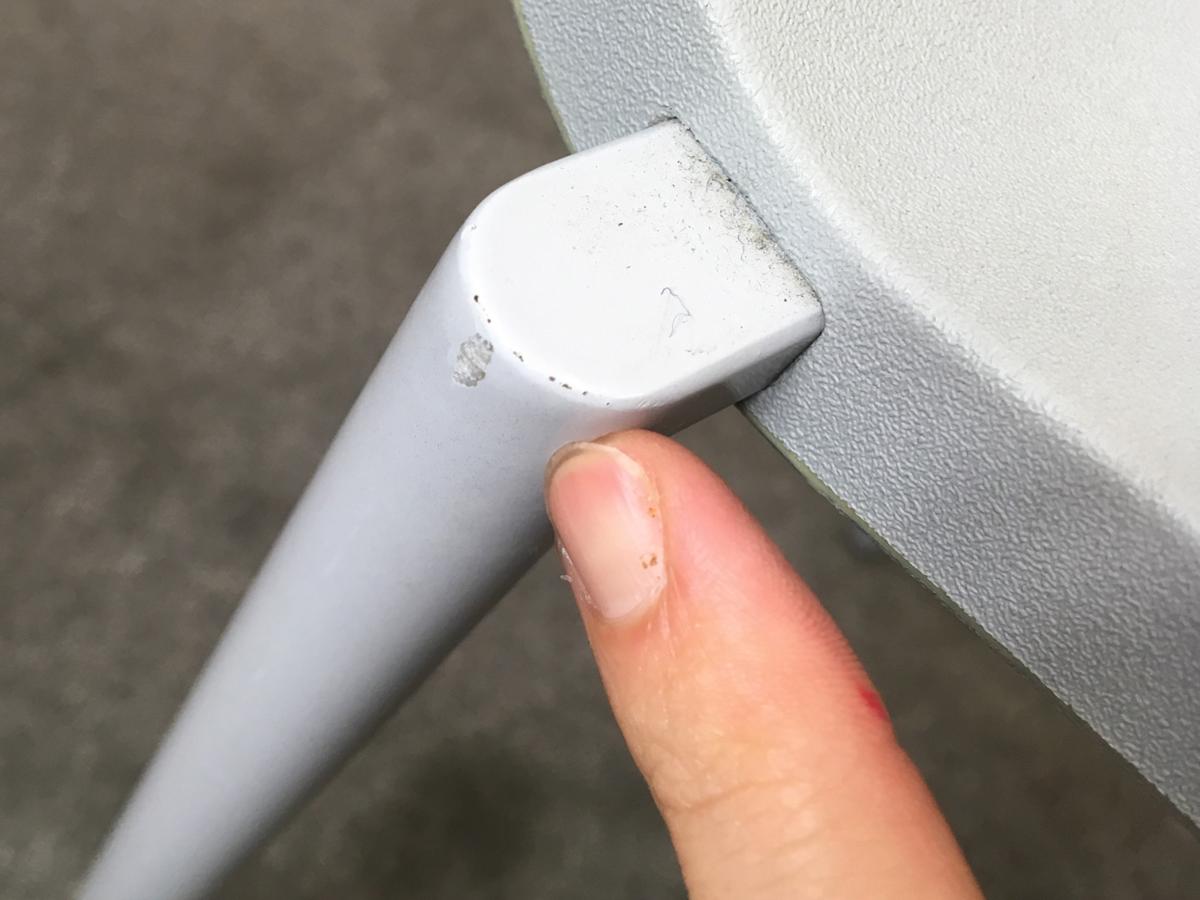 - 目立つ箇所あり傷・破れ・ほつれ・へたり・しわが多数または深い傷・破れ・ほつれ・へたり・しわが一部ある。※座面・背もたれ、シェル、脚部等にある。
