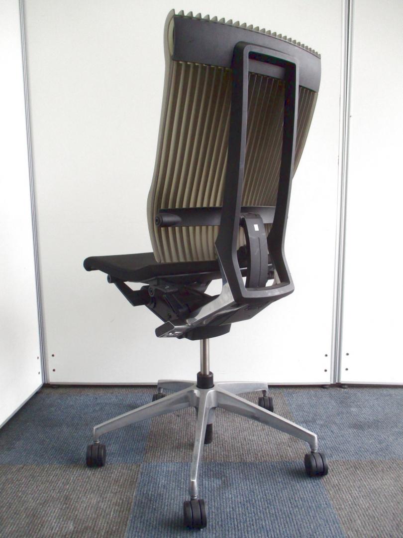 見た目は少し硬そうに見えるエラストマー素材ですが、座ってみると程よいしなり具合のやわらかな座り心地で、背中が痛くなるようなことはまるでありません。面ではなく線で支えることで、背面の通気性の良さは抜群です。