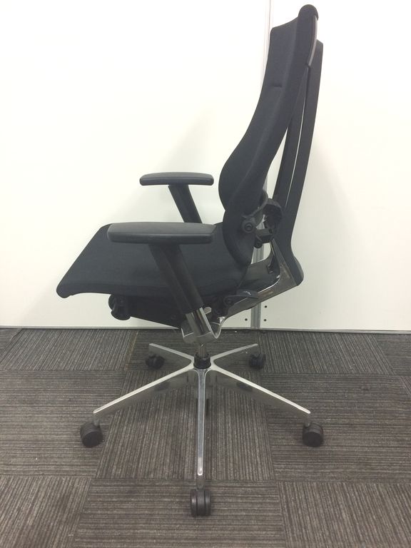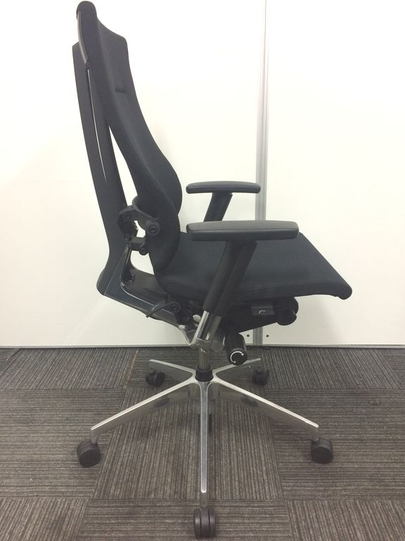 一番の特長は、着座時にチェアがピタっと体にフィットしてくれることです。 人がチェアの座り心地を調節するのではなく、チェアが人に合わせて動くのです!着座時に座面が沈み込みながら後方へスライドし、それと同時に背もたれの腰部分が前にせり出し、「ずっと座っていたくなる」と言われるほどの座り心地に調節してくれます。それを実現しているのが、A.L.S(アクティブ・ランバー・サポート)機構とP.S.S(パッシブ・スライド・シート)機構です。 さらに、背もたれにかかる体圧を徹底的に分析して作られた絶妙なカーブが、常に腰をサポートしつつ背骨のラインに沿ってくれます。