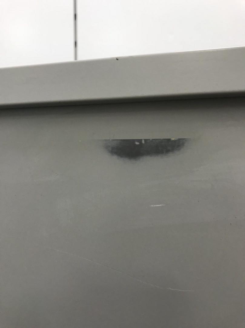 - 目立つ箇所あり傷・凹みが多数、深い傷・凹みが一部ある。(例、天板、正面、背部、サイド部分にある。)