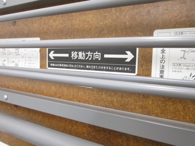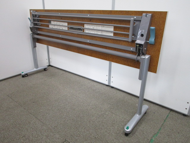 使わないときには跳ね上げて収納可能な平行スタックテーブルが入荷いたしました!