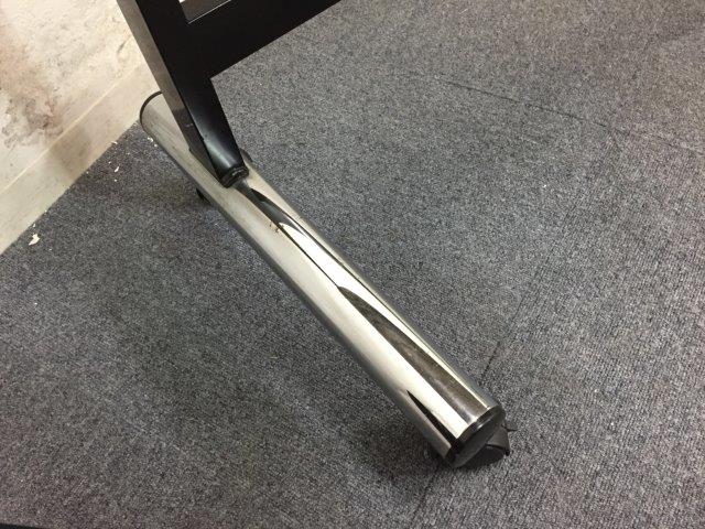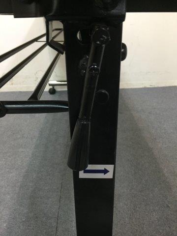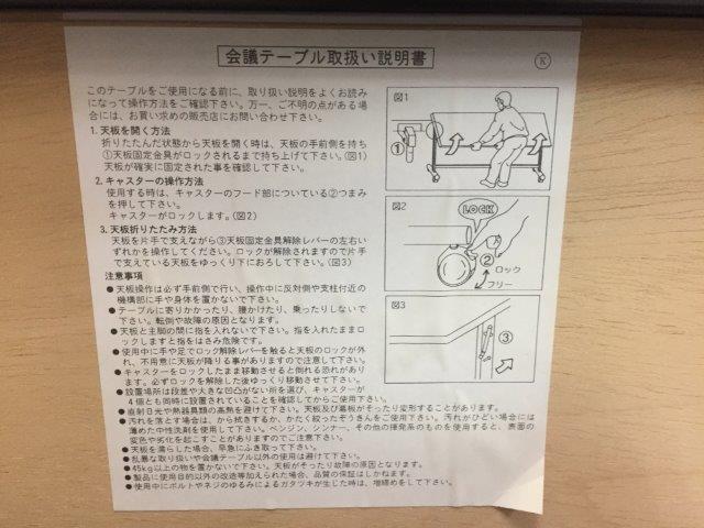 - 一部不具合あり天板歪み、アジャスター無し、キャスター使用不可ようなそのテーブルの本来の効用を果たすための機能以外の一部が使用不可な状態。(例、キャスターロッ ク機能使用不可、棚板無し等がある。)