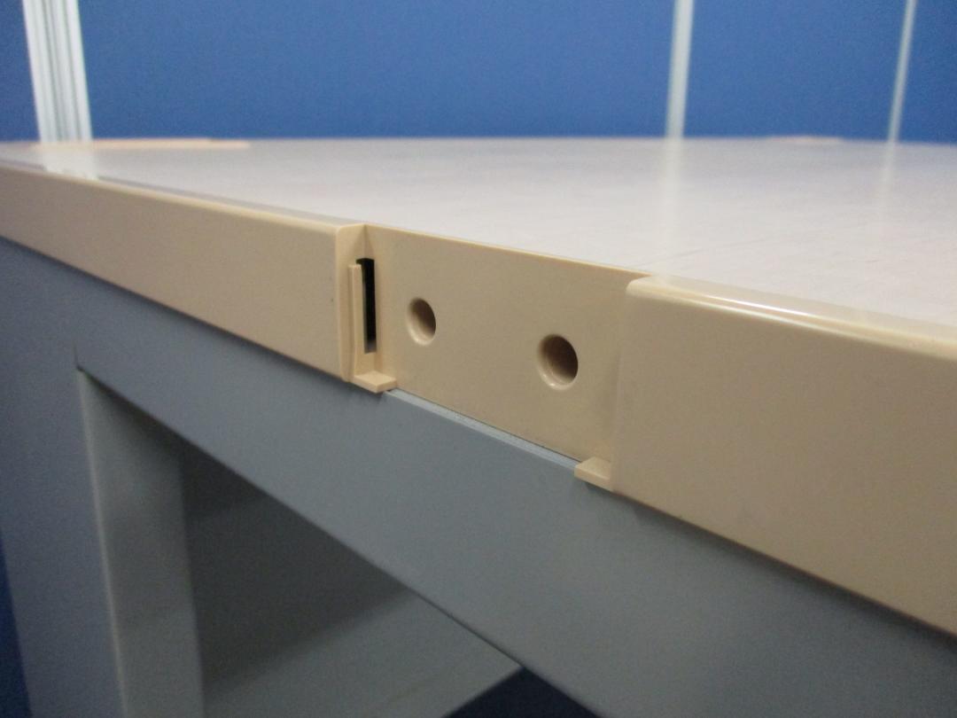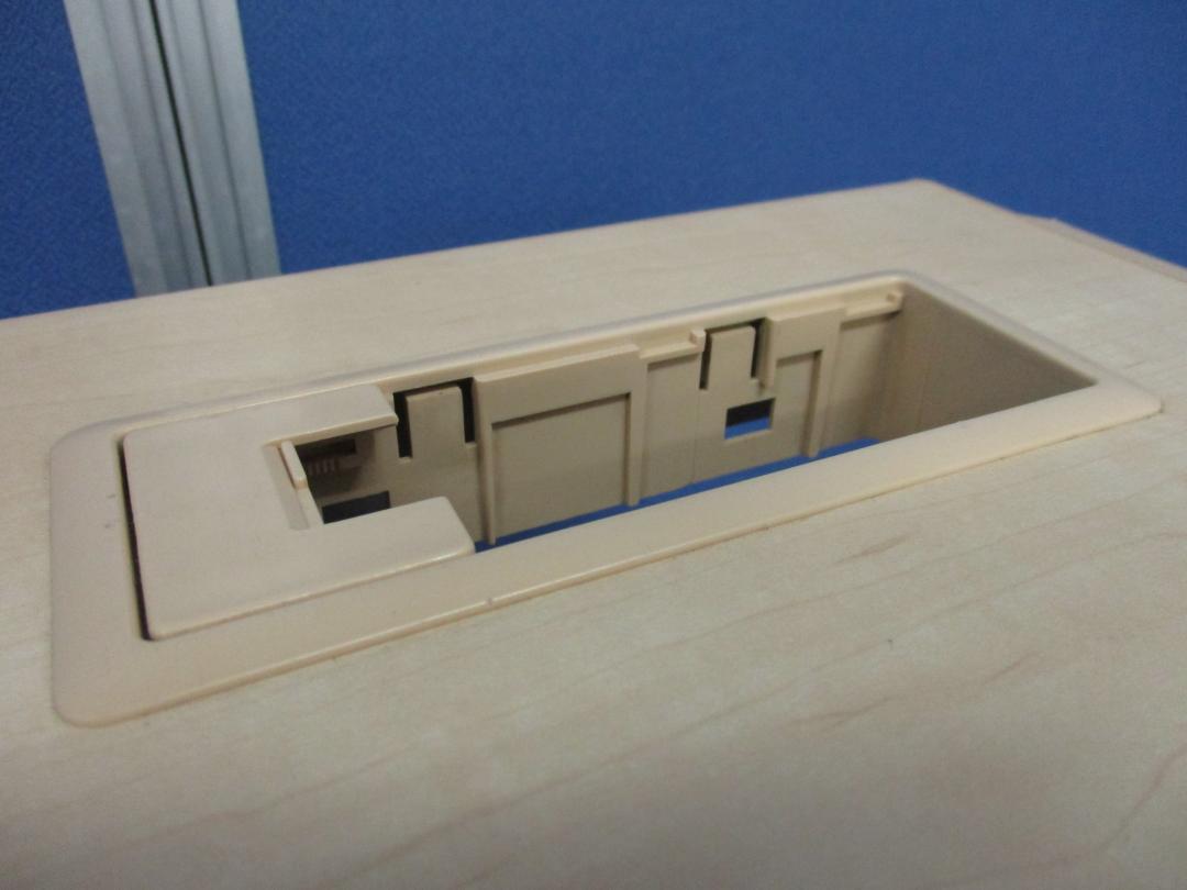 - 天板にコードホールが2ヵ所あり、レイアウト自在です。天板と幕版の間に30mmのすき間があり、対向配線も容易です。