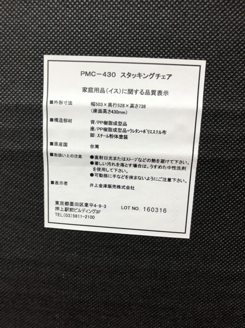 【中古】 PMCチェア 井上金庫 スタッキングチェア 226635