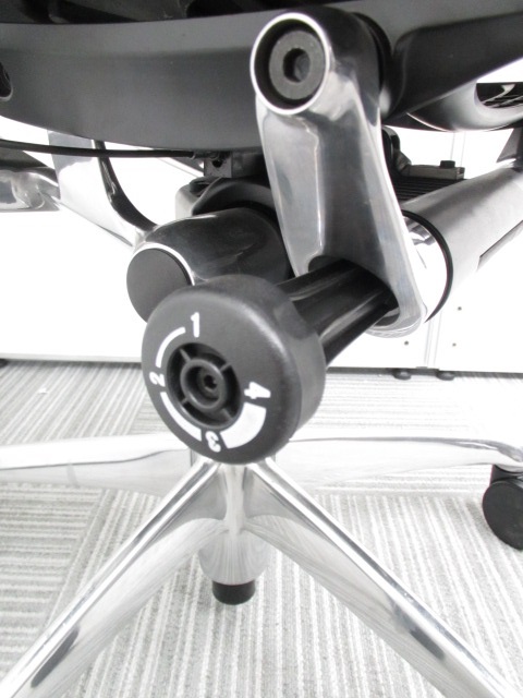 - ロッキングの強弱を調整するダイヤルがございます。体型に合わせてリクライニングの固さを座ったままで調整できます。
