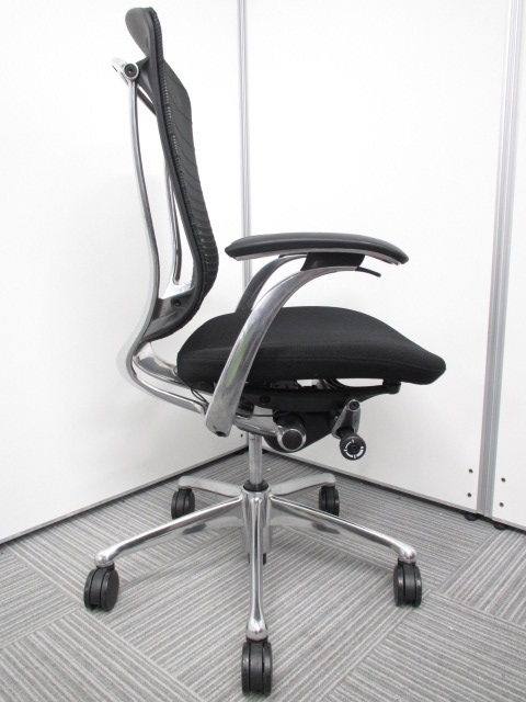 【世界で認められた革新的タスクチェア!人間工学に基づいた快適な座り心地を実現!】■オカムラ(okamura)製 コンテッサ(Contessa)チェア ハイバック 肘付き 背面メッシュ ■可動肘・ランバーサポート付 ■ブラック ※肘スレ有