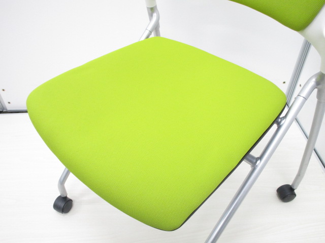 【お部屋の雰囲気が明るくなるグリーン!】座面が跳ね上げ式のため、収納性◎!|イトーキ マノス|キャスター付き|【スタック】- 池袋店