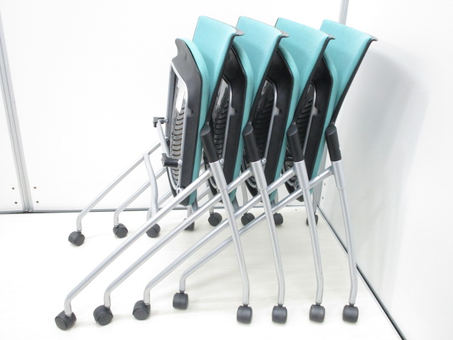 座面を跳ね上げることで水平に収納できるミーティング用チェアです!
